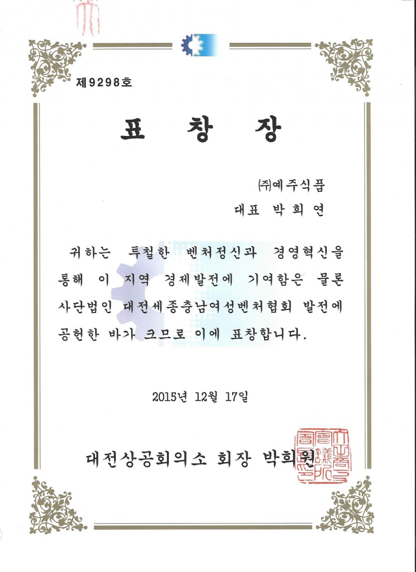 HOME > 예주식품 소개 > 수상인증